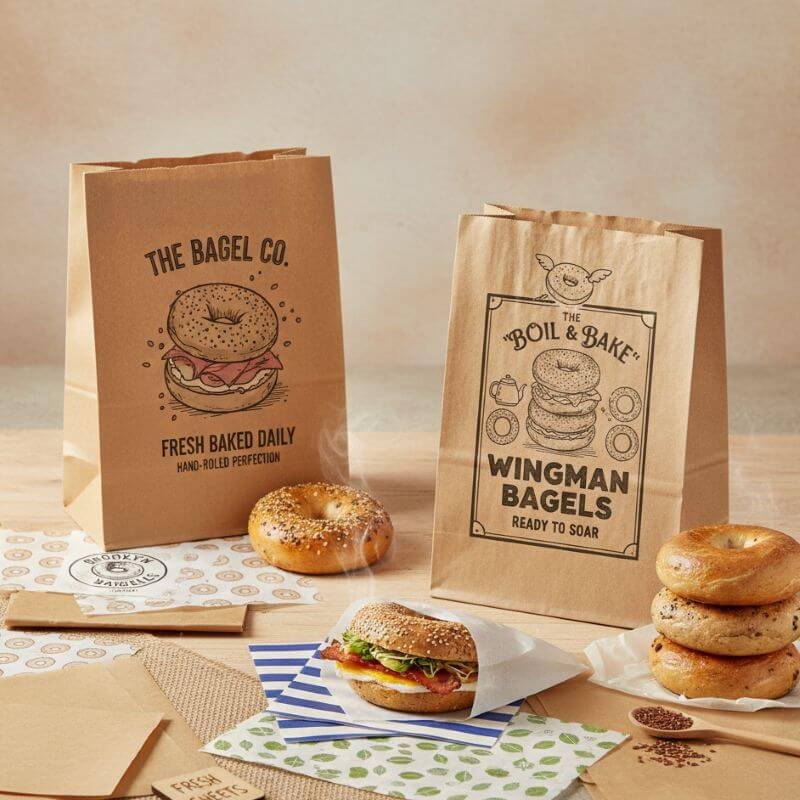 Bagels are one of the best selling bakery items. Customers love to consume fresh and warm bagels. To help you keep your bagels fresh and maintain their crispiness and shape we offer custom bagel bags. These printed bagel bags with logos are made from high-quality, eco-friendly materials. You can print your bakery name and logo on top of them. These bags are available in custom sizes and at wholesale prices with free shipping across the United States.