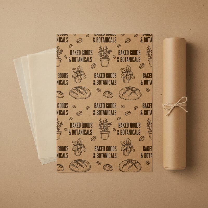 You can fully customize Rolls of Kraft Paper and bags to fit your brand’s style and needs. Choose from various patterns, sizes such as small sheets can be as little as 4 inches by 4 inches, while larger sheets go up to 20 inches by 25 inches. Rolls come in widths from 12 inches up to 48 inches. For printing multiple advanced techniques like digital, flexography, lithography, and offset are available. You can print your brand’s name, logo, product images, and all important information clearly. We use only food-safe inks that are safe for handling food packaging and protect human health. Additional finishes such as embossing, debossing and UV protection can be added to the custom kraft paper. You can also pick special coatings like greaseproof, PE, silicone and wax as well as antimicrobial layers to keep your food fresh. Our design team can help create attractive and unique graphics. This makes Kraft paper not only strong and practical but also a smart marketing tool for businesses.